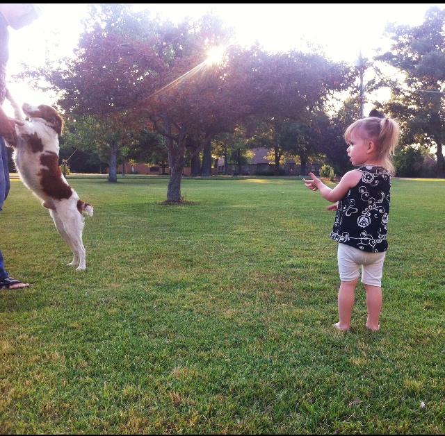 When we got home tonight we had some fun in the yard. Liv ran and kicked her ball and played with her Tyler and then ran some more.